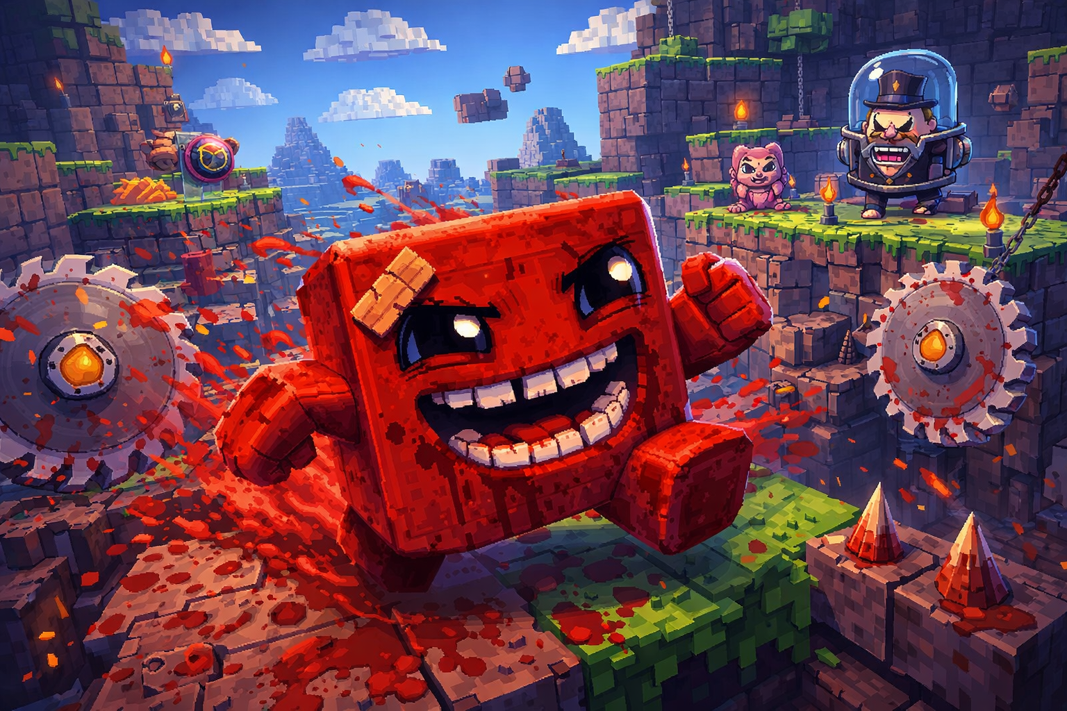 E chegou o dia! Super Meat Boy 3D acaba de sair hoje (31 de março) e está já no Game Pass, trazendo nosso querido cubo de carne sangrento para a terceira dimensão. Mas será que essa transição deu certo ou virou uma grande salada de frutas?